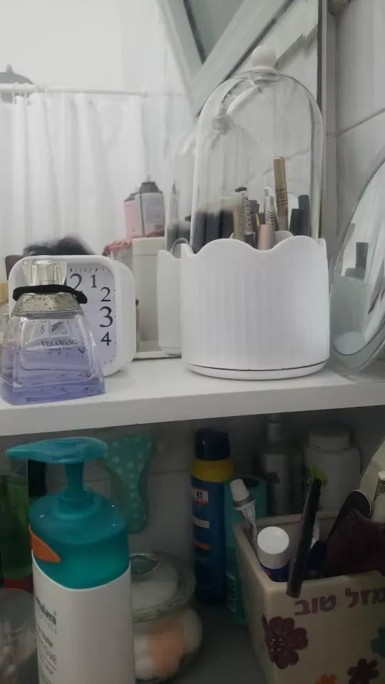 "OMG this makeup holder is a lifesaver! Fits all my brushes and lipsticks neatly. Love the 360° rotation, makes getting ready so much easier. Plus, it's super cute on my vanity! Who knew organizing could be this chic? Highly recommend for keeping your counter clutter-free.💄💅😊"